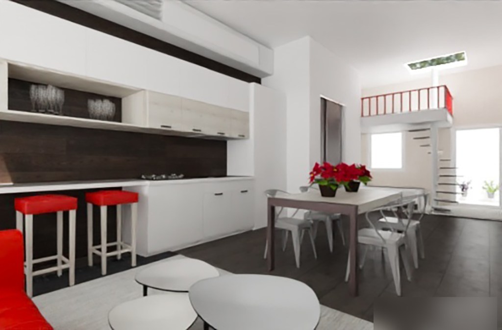El nuevo uso del espacio será vivienda en un único espacio amplio donde todos los usos están comunicados. La única estancia cerrada es el baño. La zona privada se articula aprovechando la doble altura, asi disponemos de dos habitaciones independientes comunicadas a traves de una escalera de caracol.