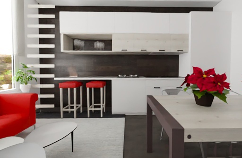 La decoración se unifica en dos colores dominantes que aportan una fuerte personalidad: blanco y negro y detalles, como el gran sofá del salón en rojo. El suelo es de roble negro