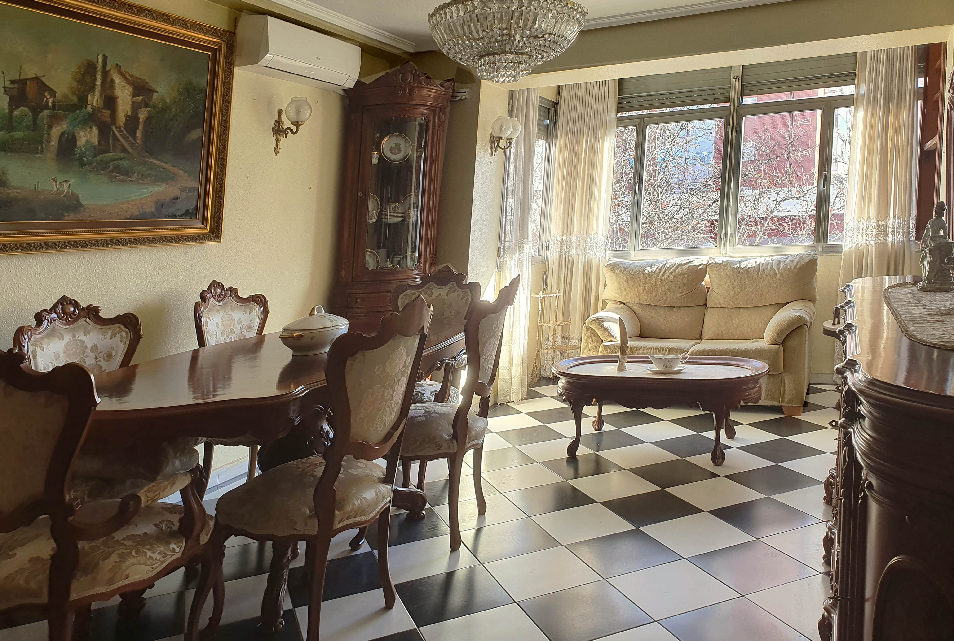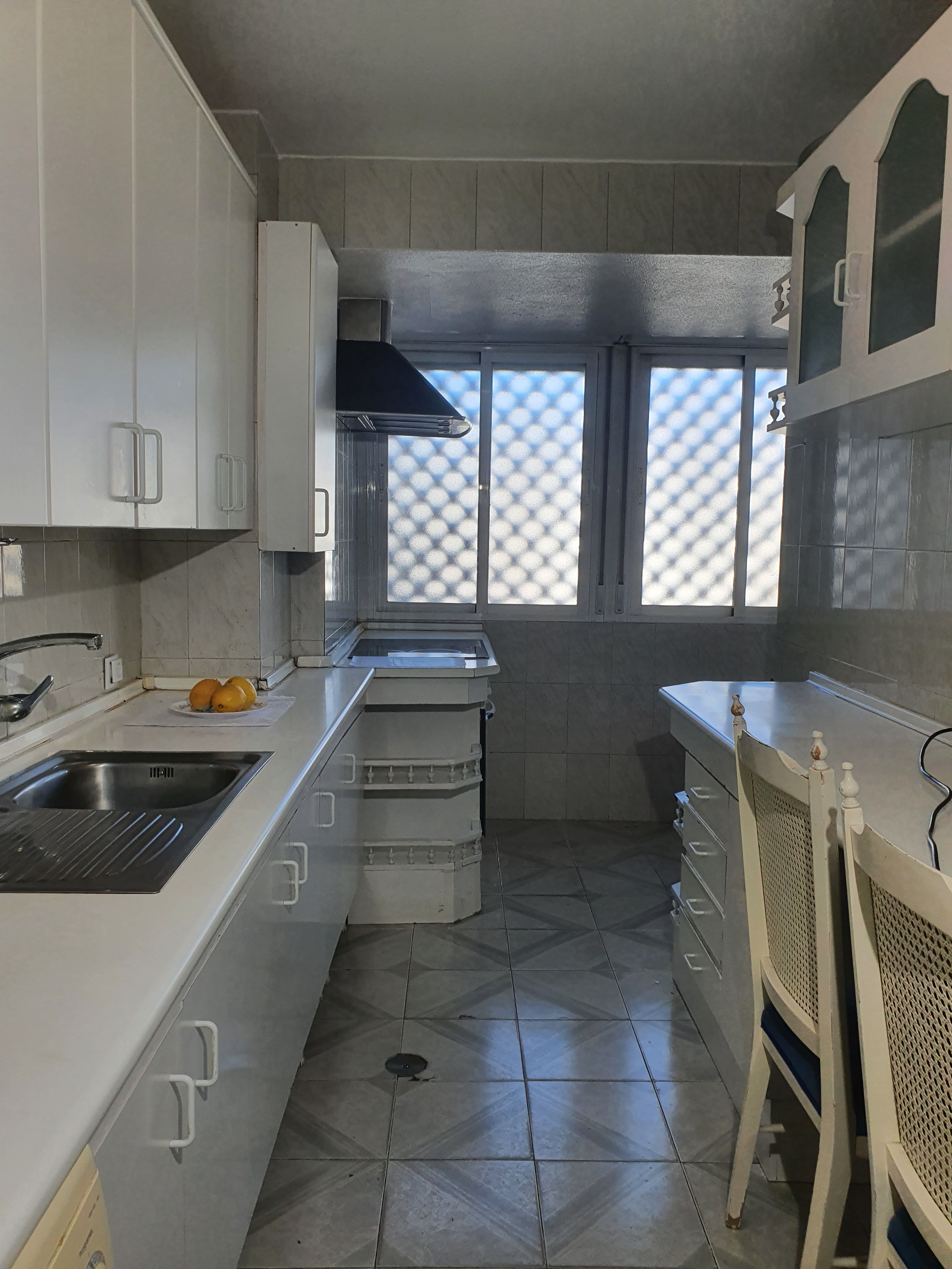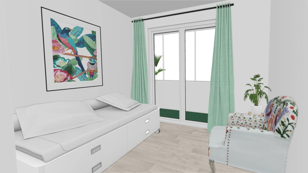 La idea propuesta era transformarla en una vivienda contemporánea pero alejada del estilo demasiado minimalista actual. Aunque la base de color es blanca, se pone el acento en tonos verdes y azules en paredes y textiles. El suelo original es azulejo blanco y ajedrezado en el salón. Apostamos por tarima de roble para aporta calidez a todas las estancias.