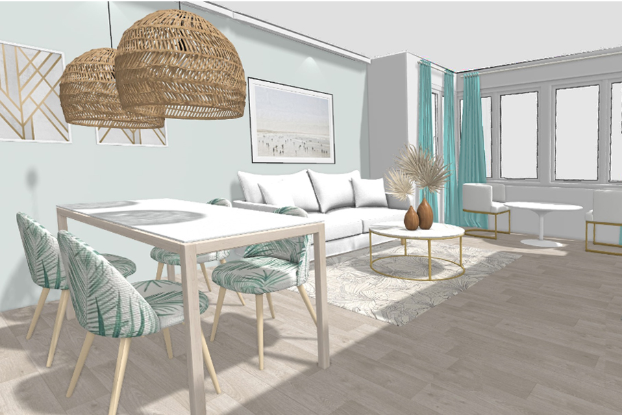 El cliente necesitaba visualizar su casa antes de animarse a la renovación del espacio originalmente amueblado estilo setentero, muebles grandes y oscuros e iluminación amarillenta.