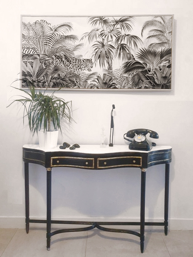 Un antigua mesa de televisión convertida en aparador chic