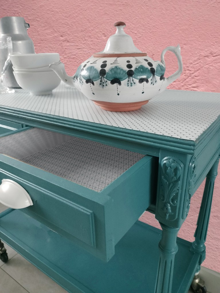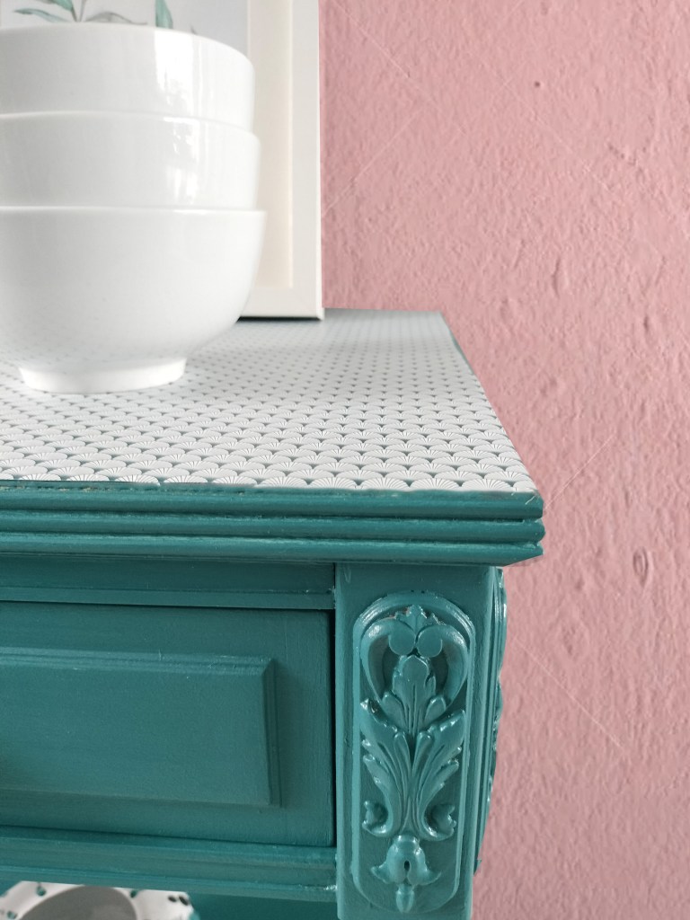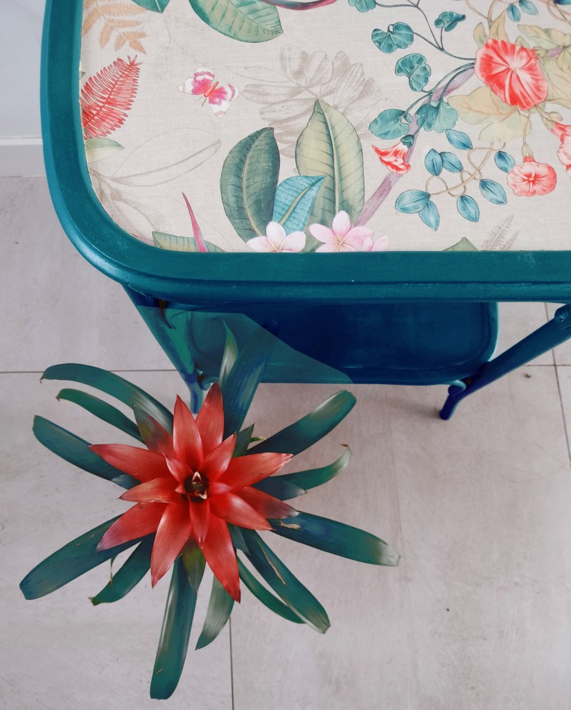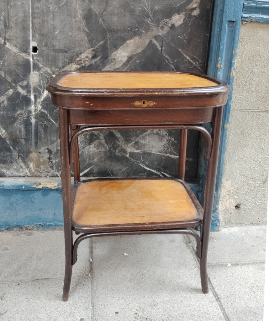 Transformación de una mesita costurera rescatada del Rastro de Madrid.