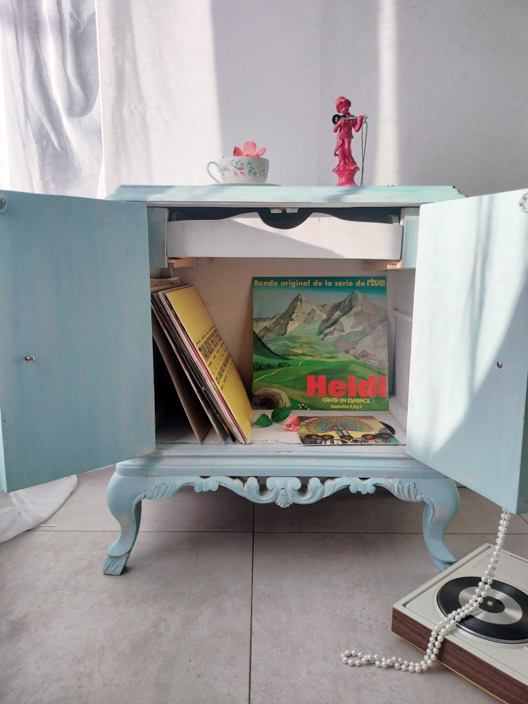 Mueble restaurado para una niña amante de cuentos y vinilos retro